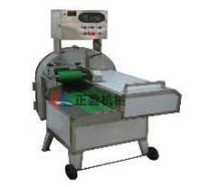 1、大型切菜機當物料由送料器壓向動刀盤時,動刀盤把物料切成片狀,再由動刀盤刀片下面的斜面把片壓向定刀盤,定刀盤上平行排列的刀片或方格刀片把片分割成條或粒,再由撥料盤撥出。本機具有體積小、功效高、功能齊全的優點,能加工各種規格的 片、條、絲、粒狀瓜果。